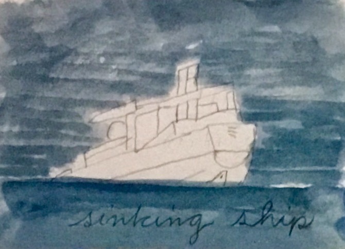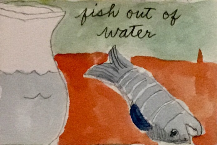This morning I went into my copy shop to make the gouache painting I did last night into a holiday card. This shop is close to my house and small. It is owned by an Arab man. He and his son work there. As I am waiting for him to finish my job I look around the shop. Usually I look at the artwork hung on the walls as it changes monthly because the shop is across the street from an art school. Today I am further back in the shop. I am looking at the posters on the walls. They are from “Amnesty International” and “Greenpeace” and “Doctors without Borders”. I say “Hey, we donate to the same places!” and he says back, “They need us now more than ever, right?” And I say “right.”