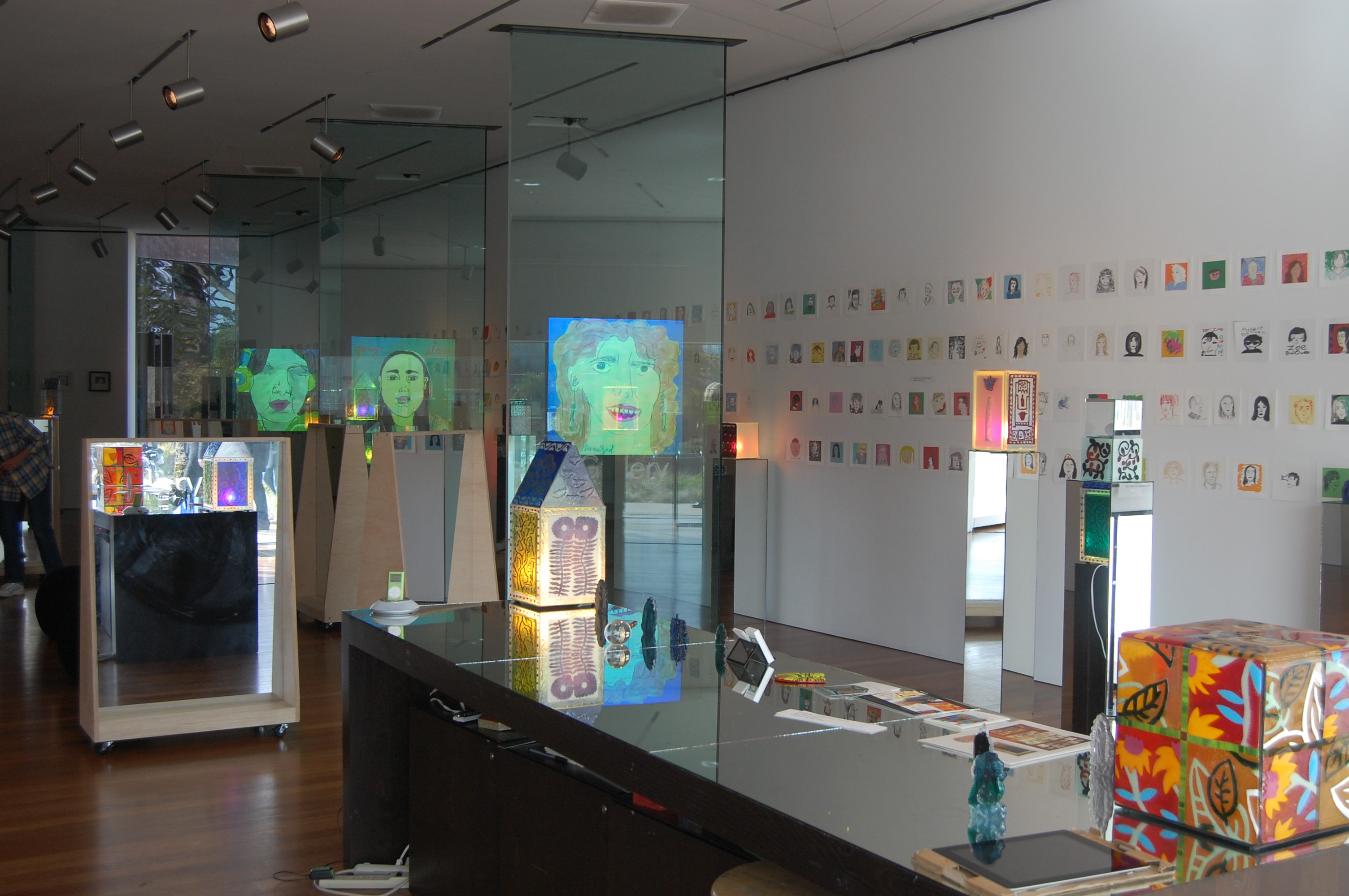 Myself and my interns also taught museum guests how to digitally draw self portraits. These are the portraits you see in the photo. My portraits are on the opposite wall and projected on the glass screens.