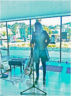 On the left, me explaining my work at museum party (with live music by Peter Whitehead)