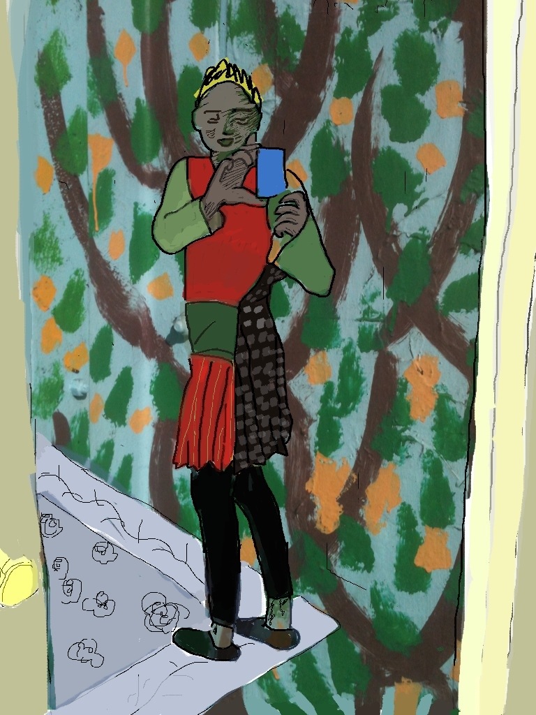 I am in a cafe when this young fellow walks in with a jaunty step. He’s a lively guy and catches my eye.  My mind is in it’s habit of constantly sizing things up to put them in a place where it interprets in the hopes of understanding. Like any mind. Image